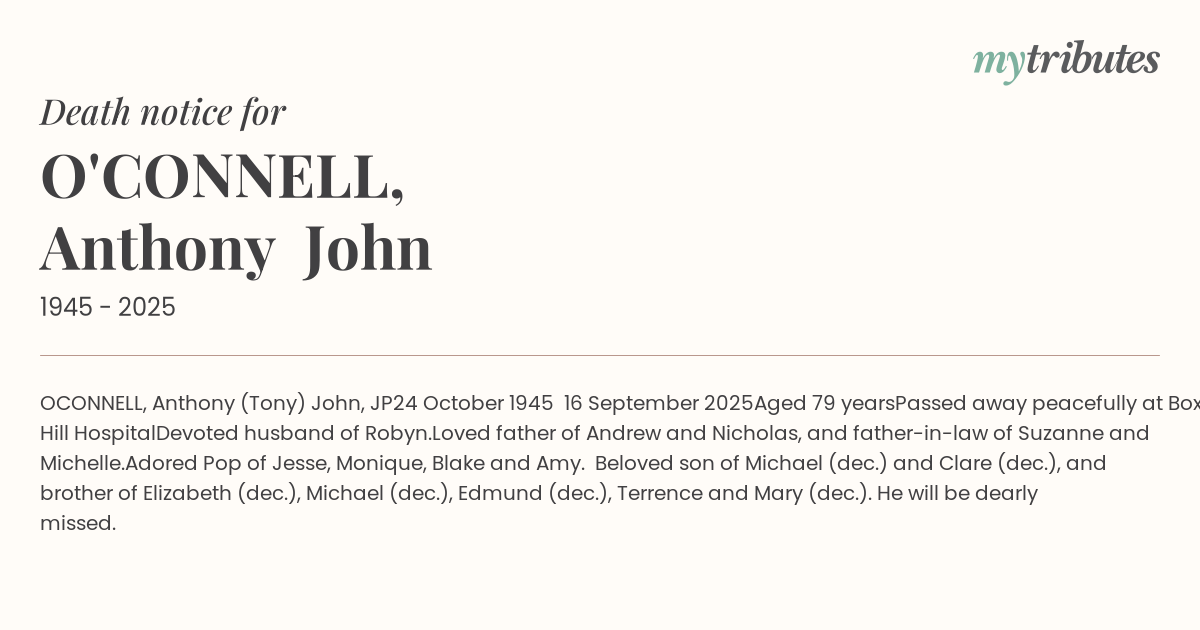 19°CO’CONNELL, Anthony (Tony) John, JP