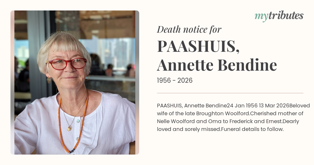 Cherished mother of Nelle Woolford and Oma to Frederick and Ernest.