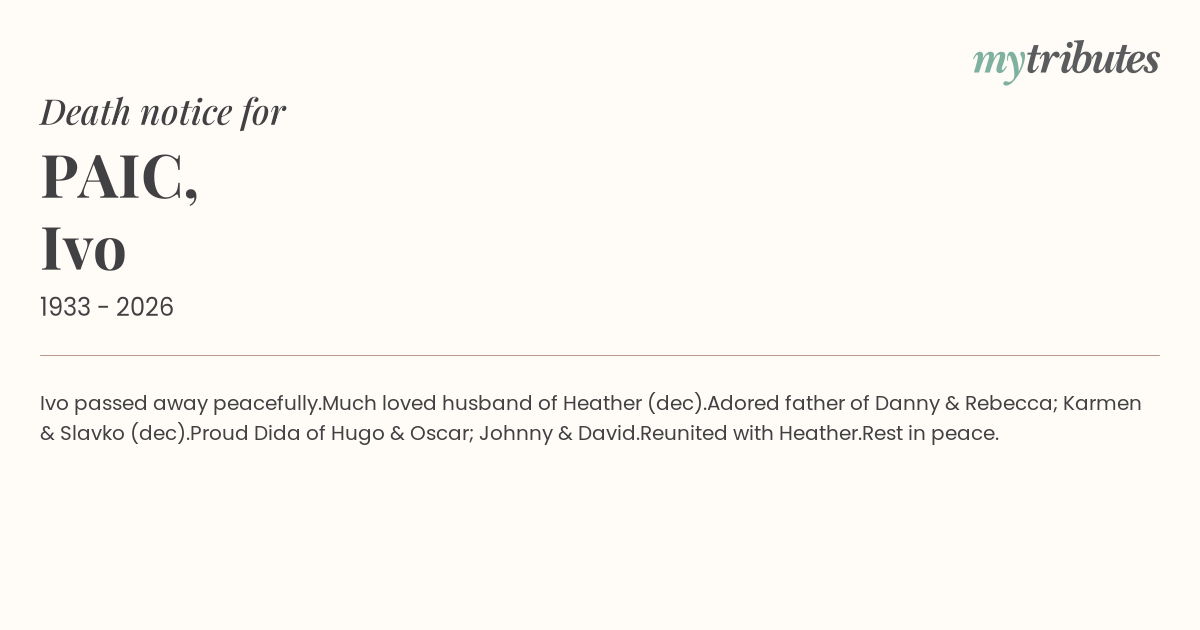 Adored father of Danny & Rebecca; Karmen & Slavko (dec).