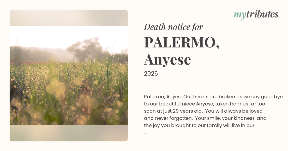 Our hearts are broken as we say goodbye to our beautiful niece Anyese, taken from us far too soon at just 29 years old.