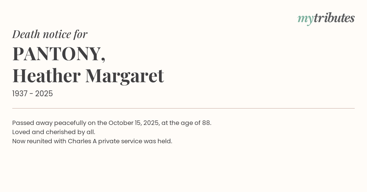 19°CPassed away peacefully on the October 15, 2025, at the age of 88.