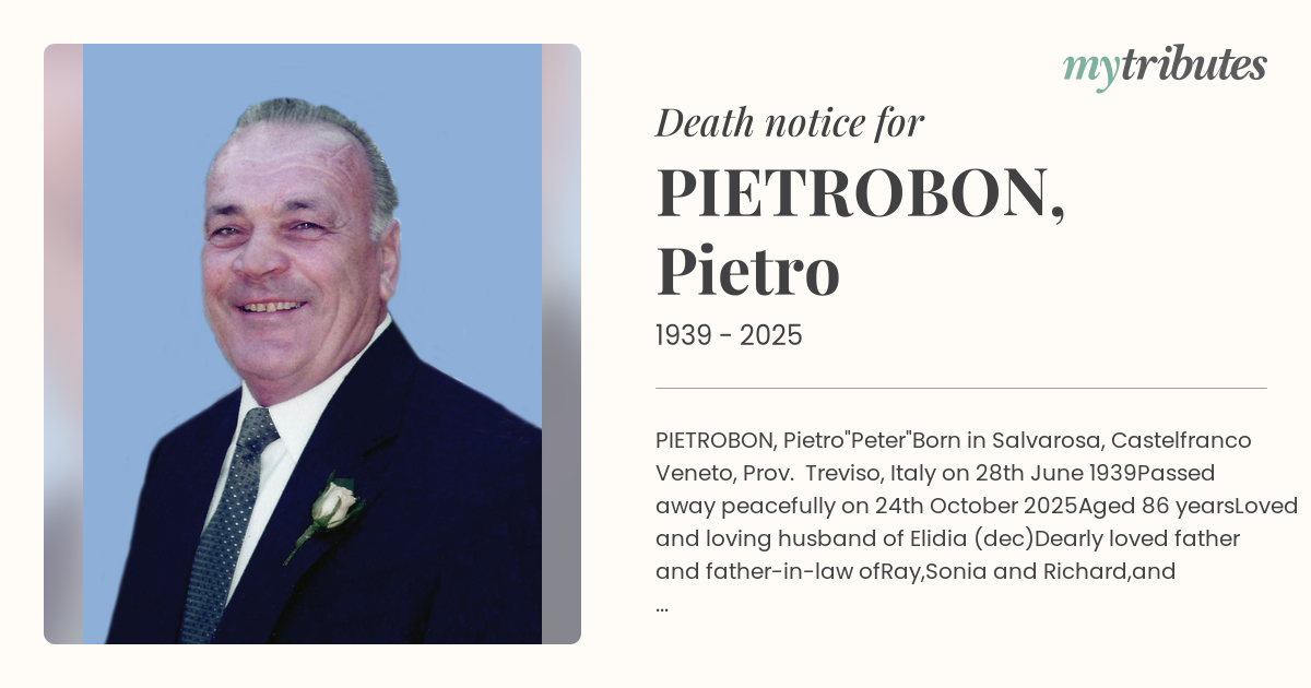 Born in Salvarosa, Castelfranco Veneto, Prov. Treviso, Italy on 28th June 1939