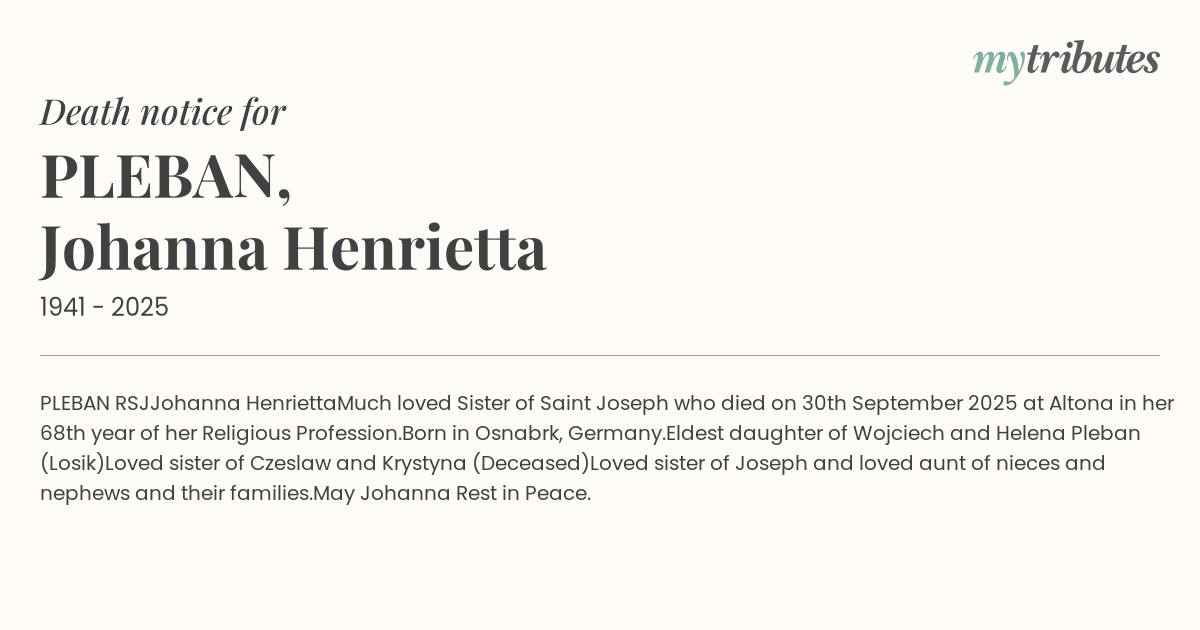 May Johanna Rest in Peace.
