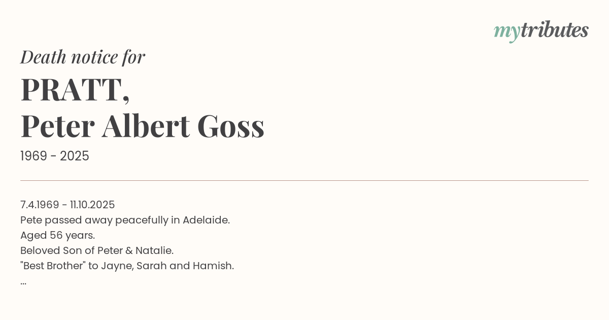 Pete passed away peacefully in Adelaide.