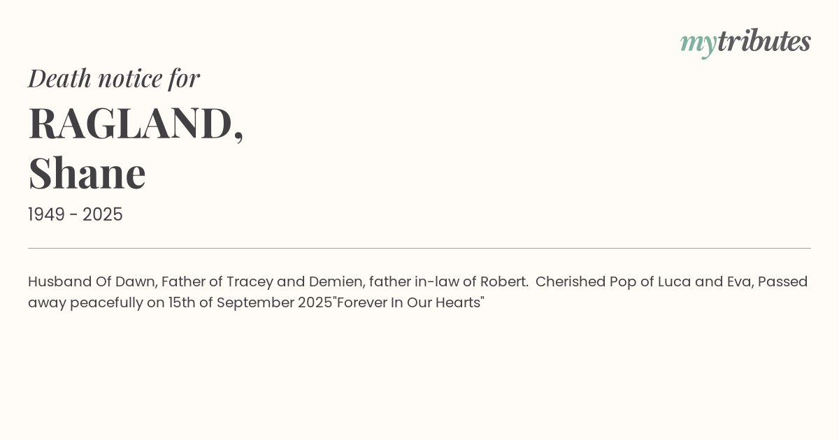 Cherished Pop of Luca and Eva, Passed away peacefully on 15th of September 2025