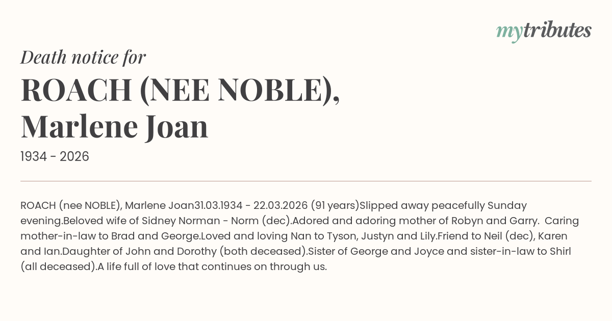 Beloved wife of Sidney Norman - “Norm” (dec).