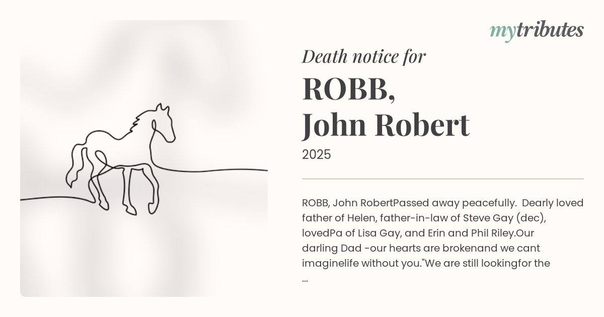Passed away peacefully. Dearly loved father of Helen, father-in-law of Steve Gay (dec), loved