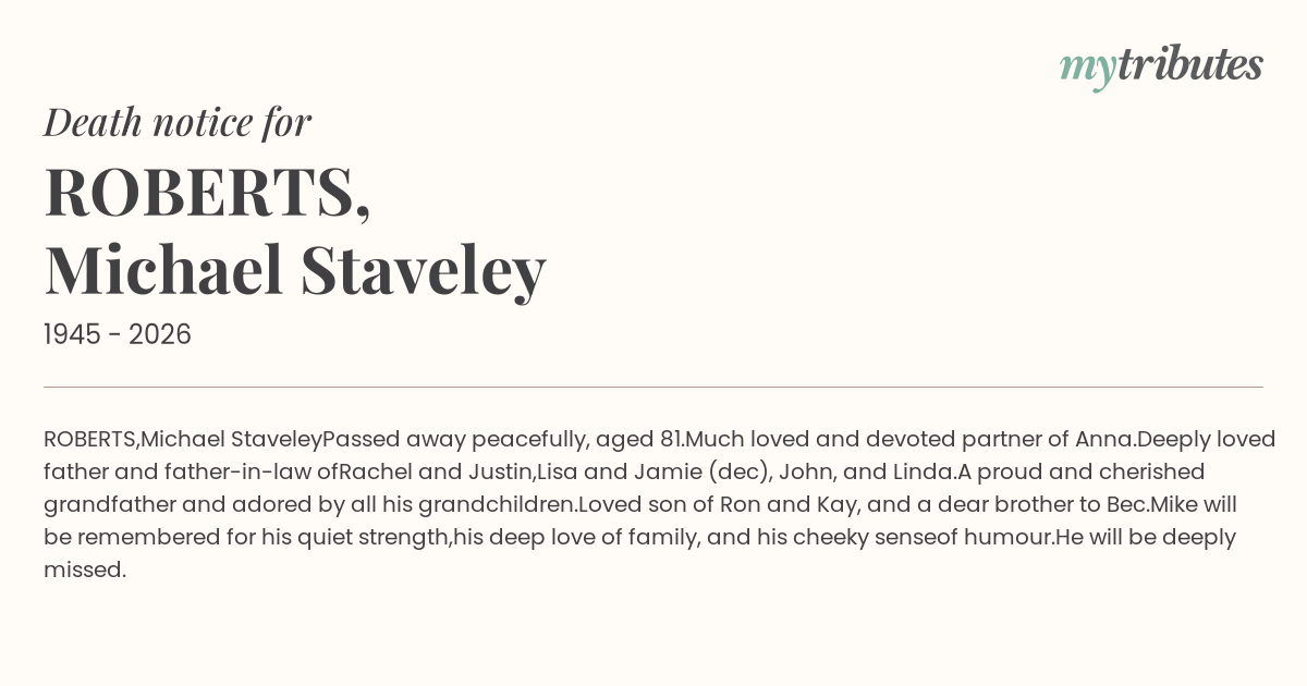 Loved son of Ron and Kay, and a dear brother to Bec.