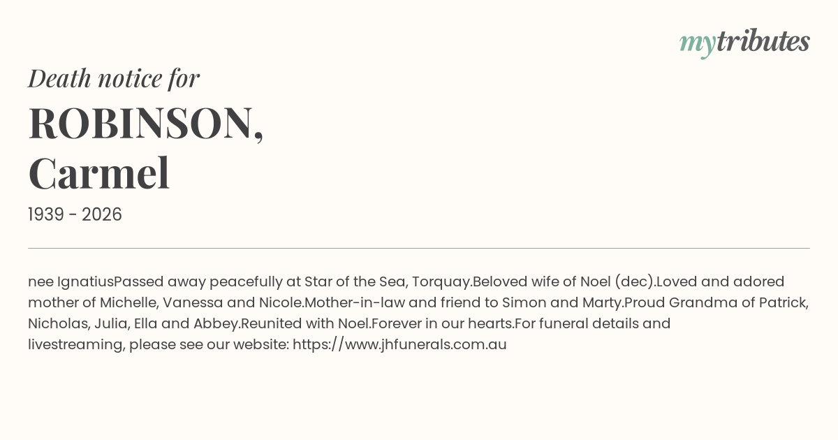 For funeral details and livestreaming, please see our website: https://www.jhfunerals.com.au