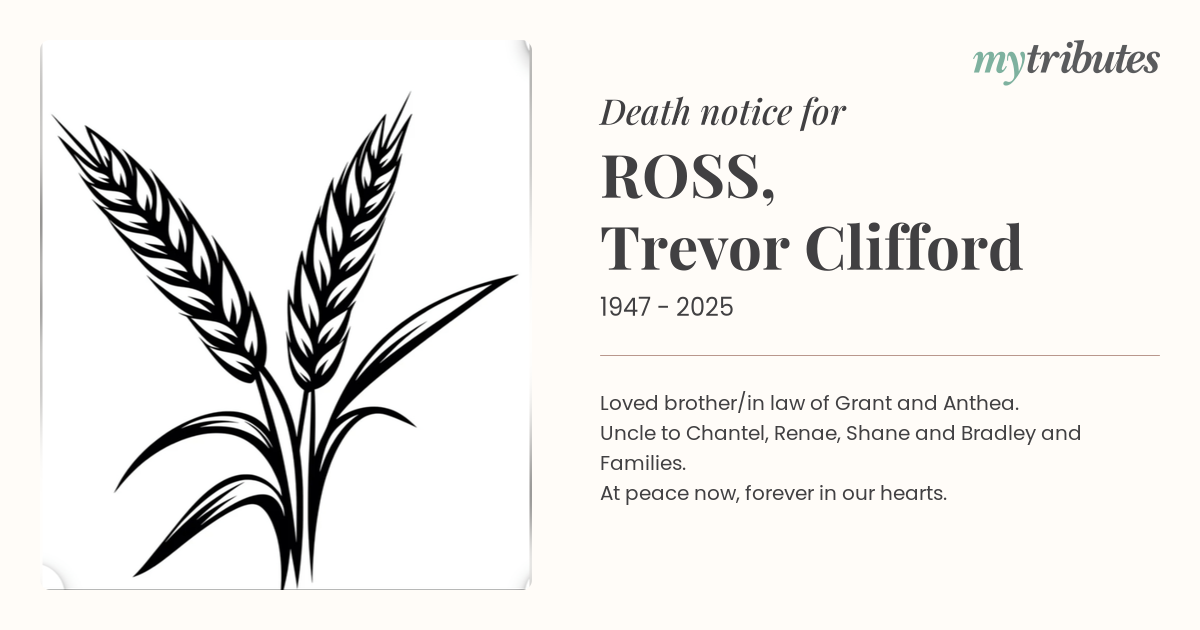 Uncle to Chantel, Renae, Shane and Bradley and Families.