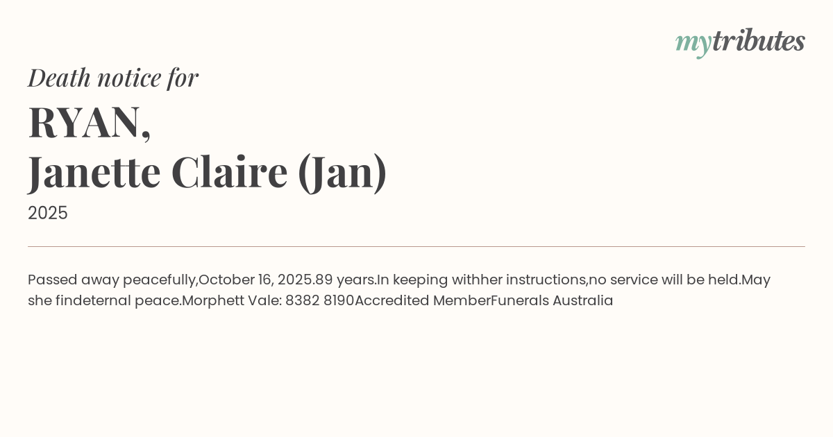 19°CPassed away peacefully,