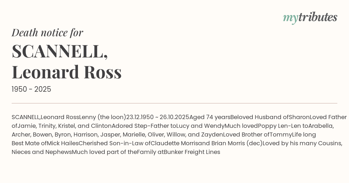 Loved by his many Cousins, Nieces and Nephews