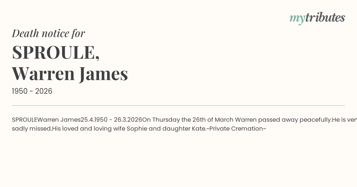 On Thursday the 26th of March Warren passed away peacefully.