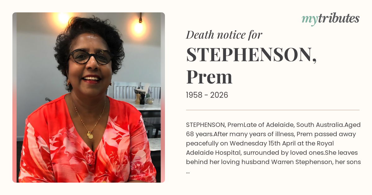After many years of illness, Prem passed away peacefully on Wednesday 15th April at the Royal Adelaide Hospital, surrounded by loved ones.