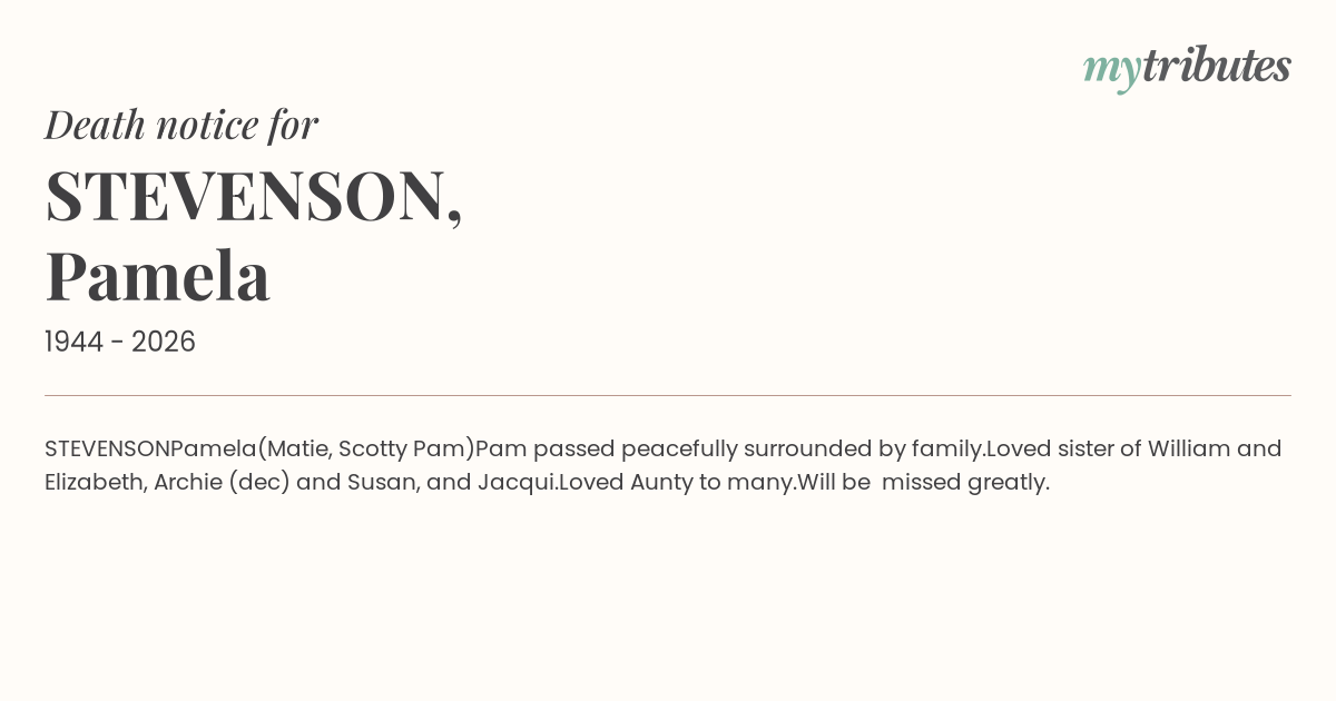 Pam passed peacefully surrounded by family.