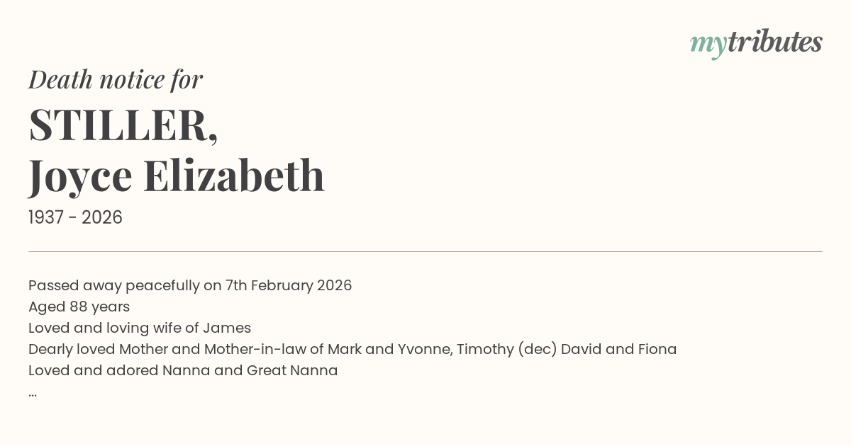 19°CPassed away peacefully on 7th February 2026