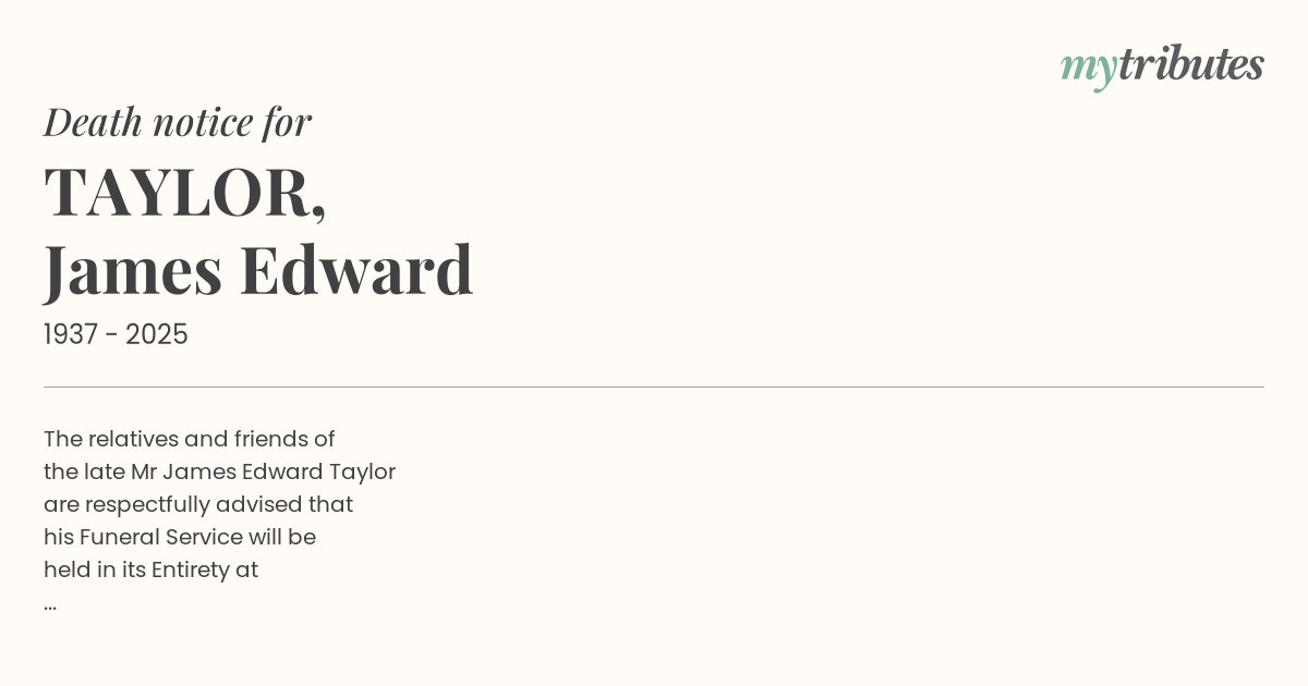 the late Mr James Edward Taylor