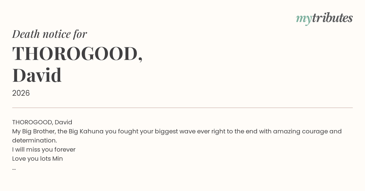 My Big Brother, the Big Kahuna you fought your biggest wave ever right to the end with amazing courage and determination.
