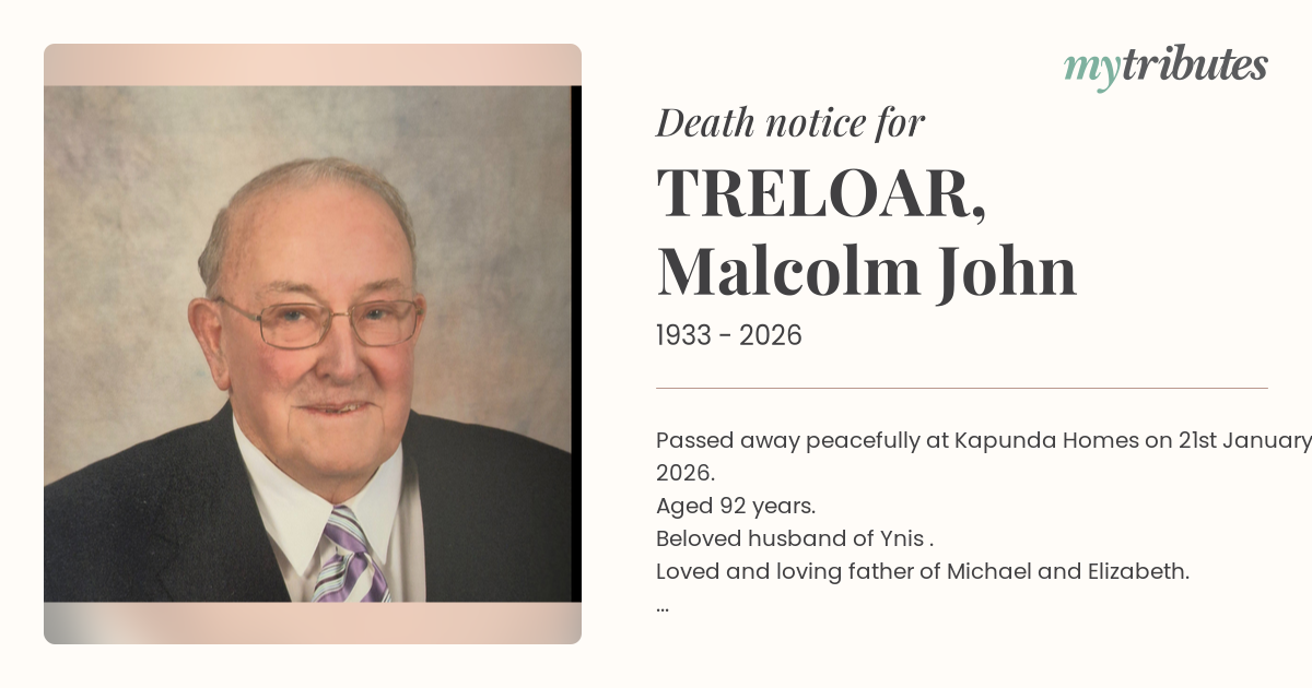 19°CPassed away peacefully at Kapunda Homes on 21st January 2026.