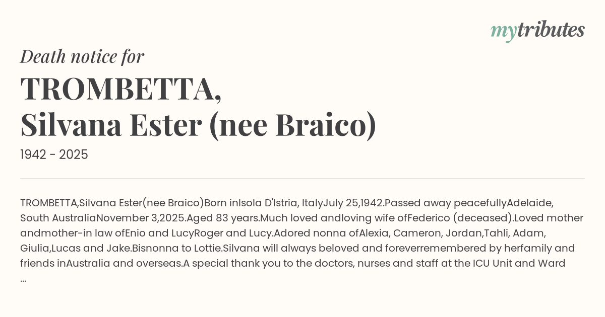 A special thank you to the doctors, nurses and staff at the ICU Unit and Ward at the RAH for their exceptional care of Silvana.