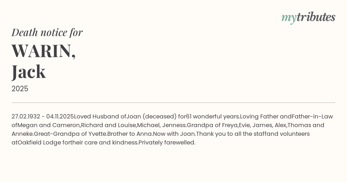 Privately farewelled.