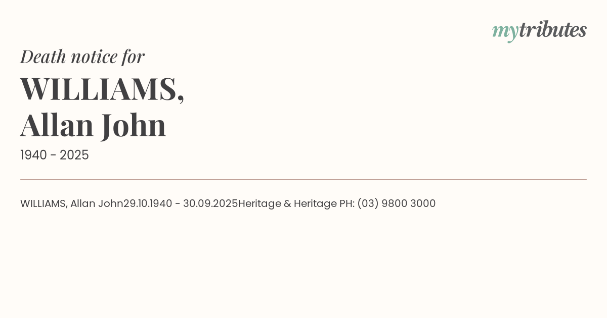 19°CWILLIAMS, Allan John