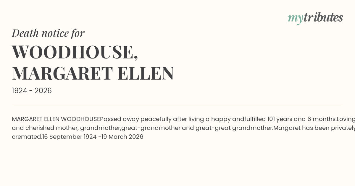 Margaret has been privately cremated.