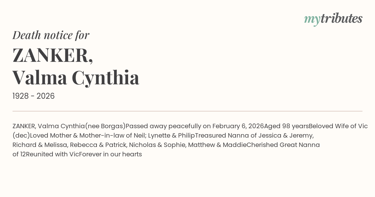 Loved Mother & Mother-in-law of Neil; Lynette & Philip