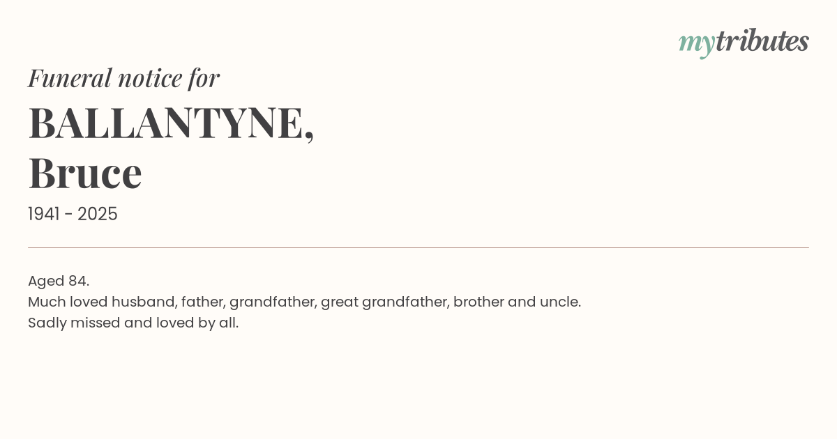 Much loved husband, father, grandfather, great grandfather, brother and uncle.
