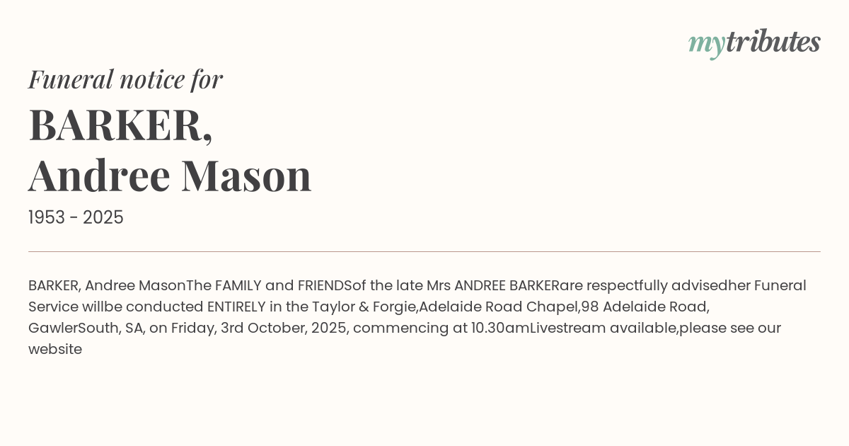 Funeral by : Taylor & Forgie: Cowan Street Gawler Funerals