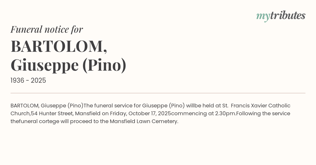 The funeral service for Giuseppe (Pino) will