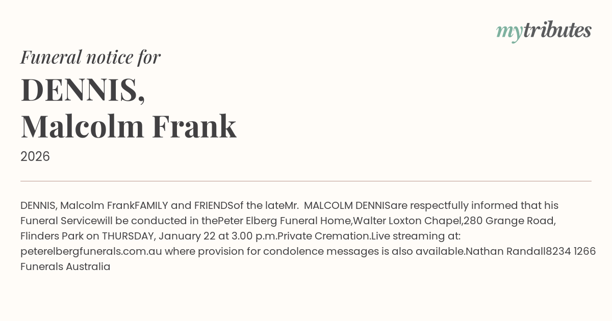 Website: http://www.peterelbergfunerals.com.au