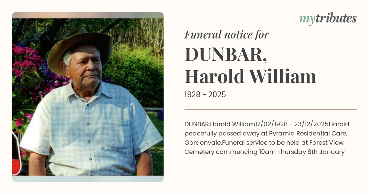 Funeral service to be held at Forest View Cemetery commencing 10am Thursday 8th January