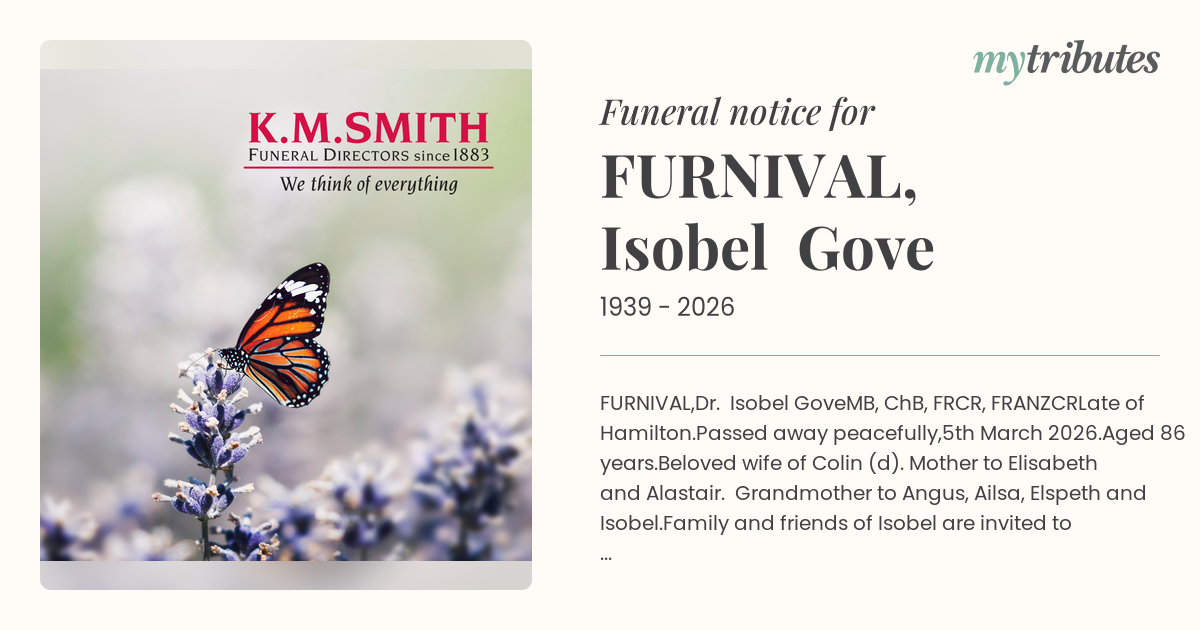 Family and friends of Isobel are invited to attend a farewell service at St Paul's Presbyterian Church, 43 St Paul's Terrace, Spring Hill, on Tuesday, 7th April 2026, at 11.00 a.m., followed by a burial at Centenary Memorial Gardens, 353 Wacol Station Road, Sumner.
