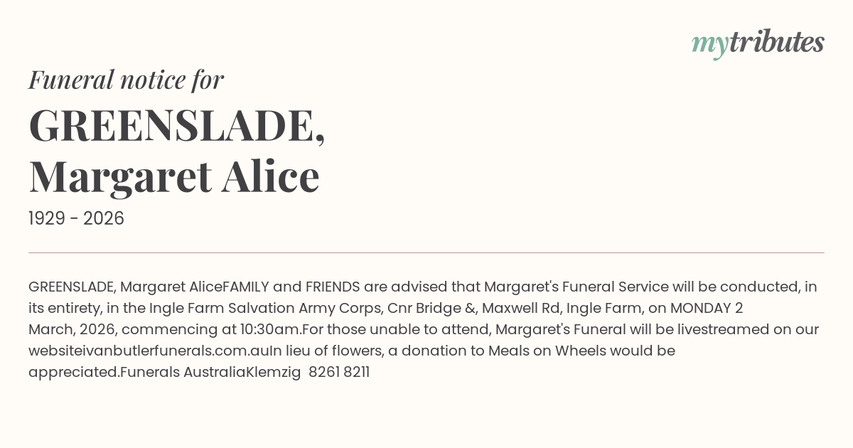 For those unable to attend, Margaret's Funeral will be livestreamed on our website