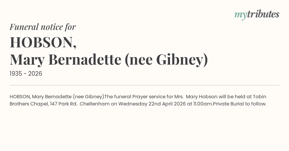 19°CHOBSON, Mary Bernadette (nee Gibney)