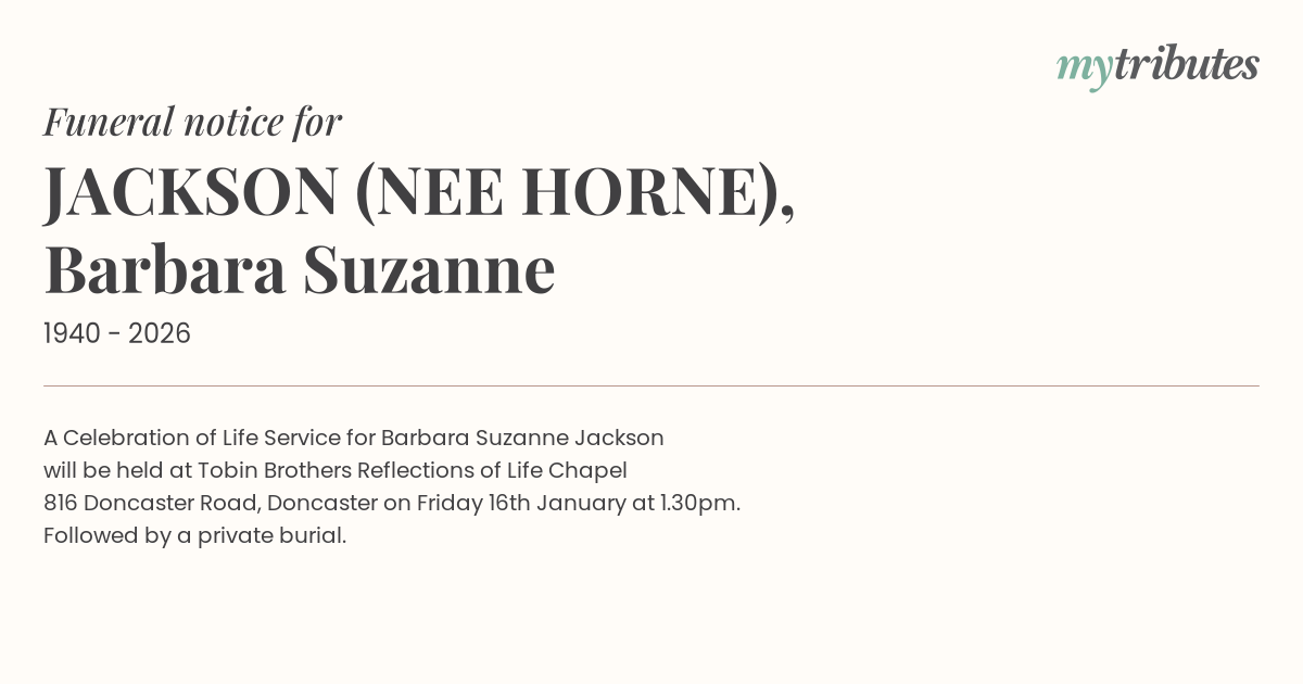 816 Doncaster Road, Doncaster on Friday 16th January at 1.30pm.