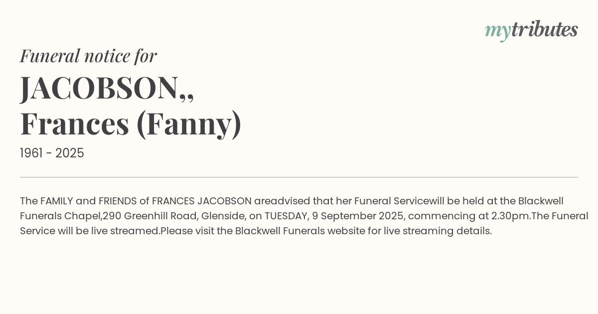 FRANCES JACOBSON are
