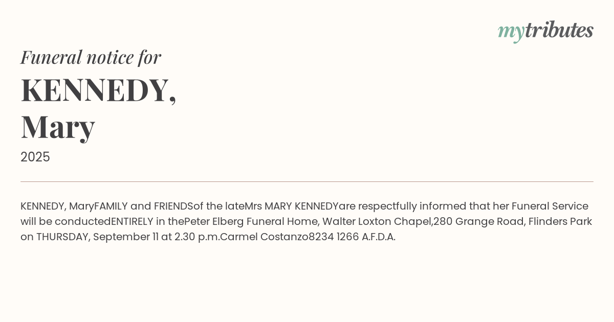 Mrs MARY KENNEDY