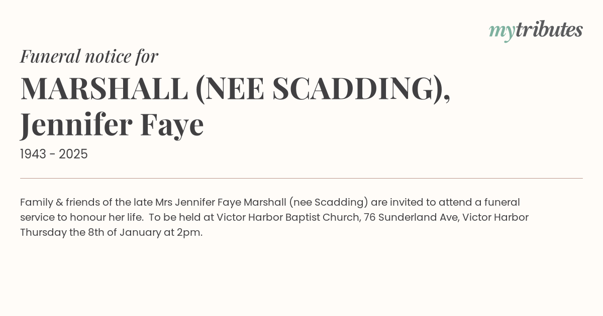 Mrs Jennifer Faye Marshall (nee Scadding)