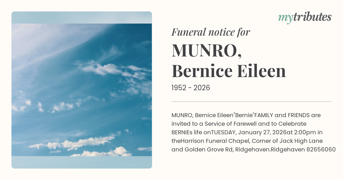 19°CMUNRO, Bernice Eileen