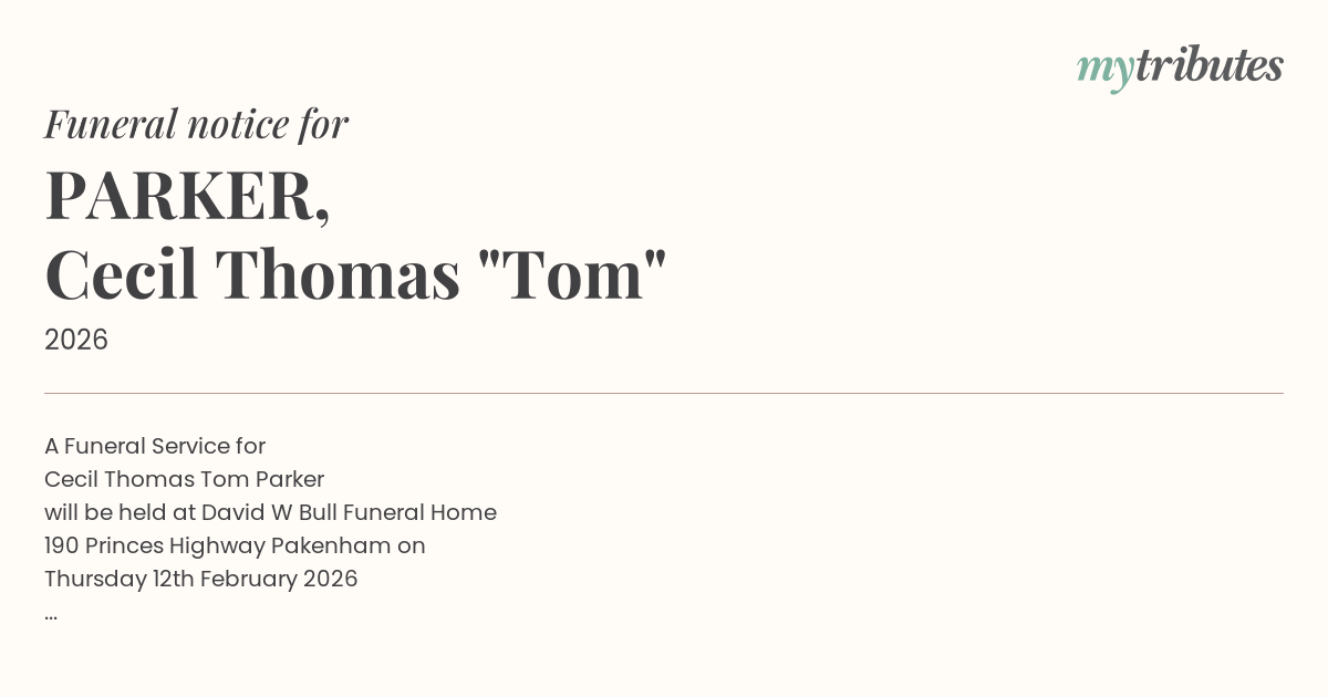 Funeral by : David W Bull Funeral Directors Pakenham