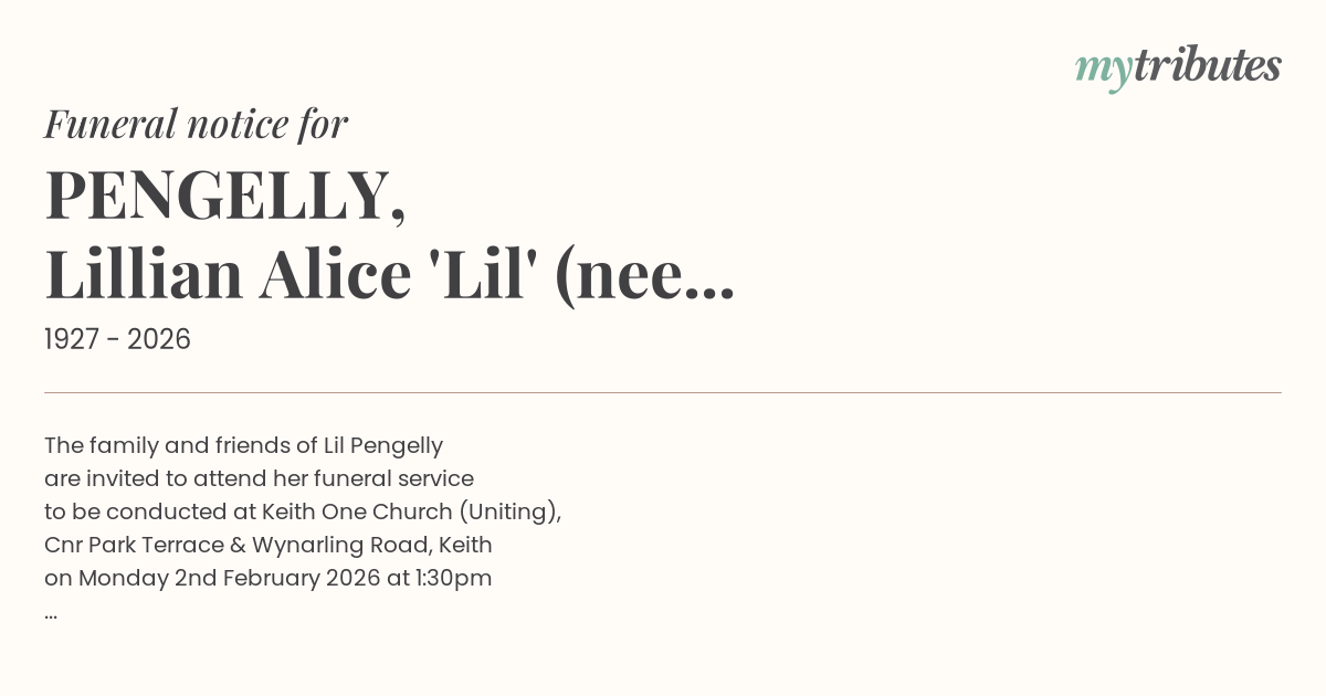19°CThe family and friends of Lil Pengelly