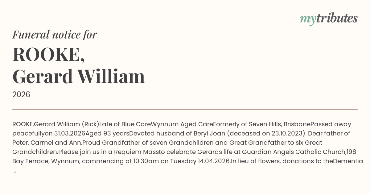 Devoted husband of Beryl Joan (deceased on 23.10.2023).