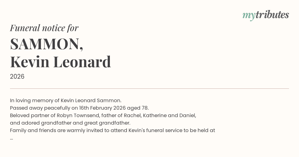 19°CIn loving memory of Kevin Leonard Sammon.