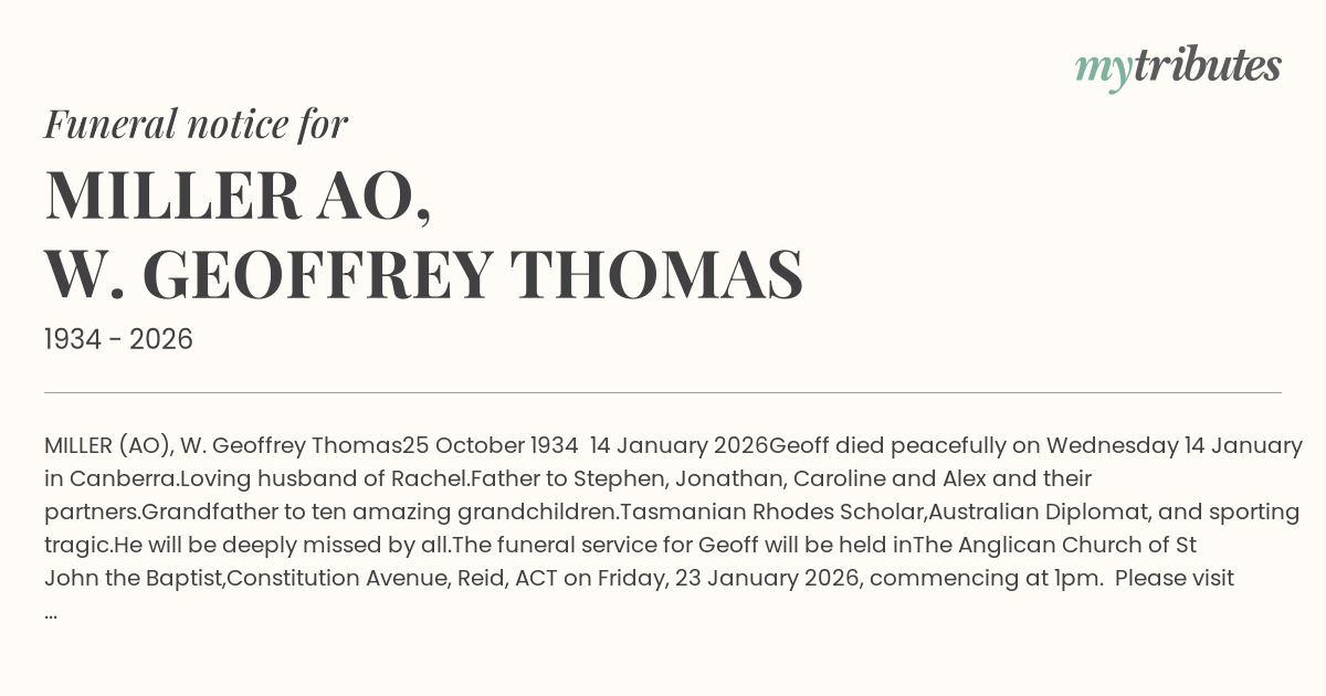 Geoff died peacefully on Wednesday 14 January