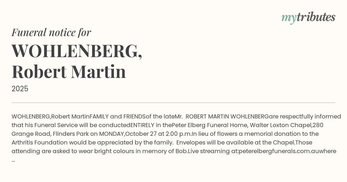 Website: http://www.peterelbergfunerals.com.au